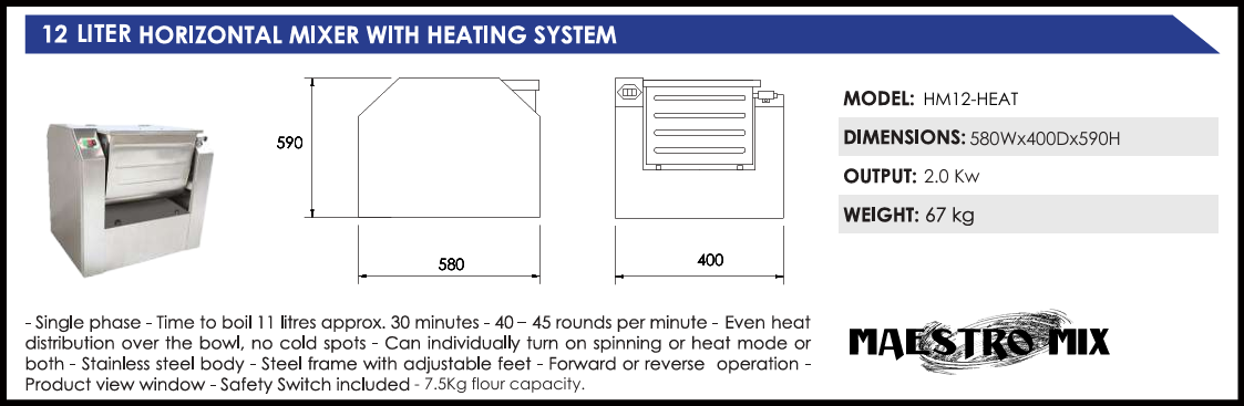 Safety Switch included, 7.5 kg flour capacity. 3 years warranty