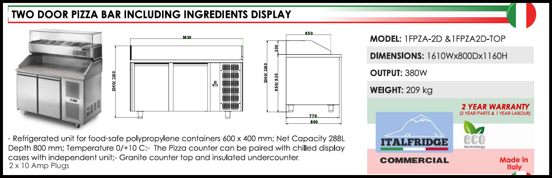 – The Pizza counter can be paired with chilled display cases with the independent unit;