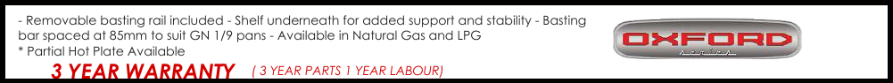 bar spaced at 85mm to suit GN 1/9 pans – Available in Natural Gas and LPG