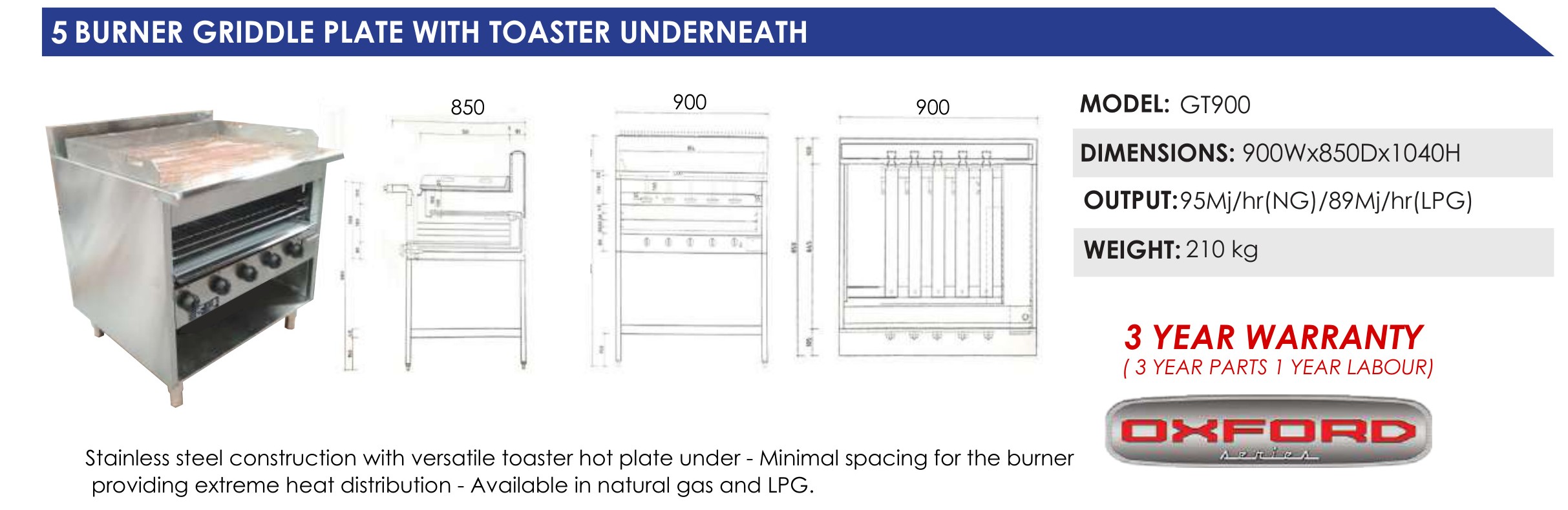 Stainless steel construction with versatile toaster hot plate under – Minimal spacing for the burner