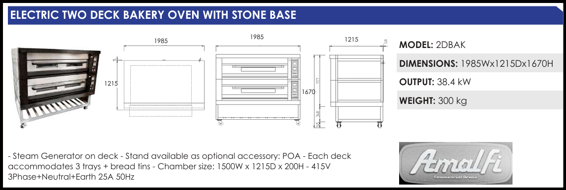 - This bakery oven boasts advanced features such a stone base that absorbs moisture and delivers high heat to ensure a crisp base right through to the centre