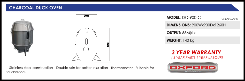 Stainless steel construction – Double skin for better insulation – Thermometer – Suitable for for charcoal.