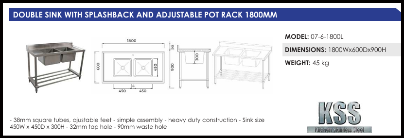 - sink size 450W * 450D * 300H