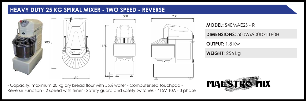 ‘- Capacity: maximum 20 kg dry bread flour with 55% water – Computerised touchpad –