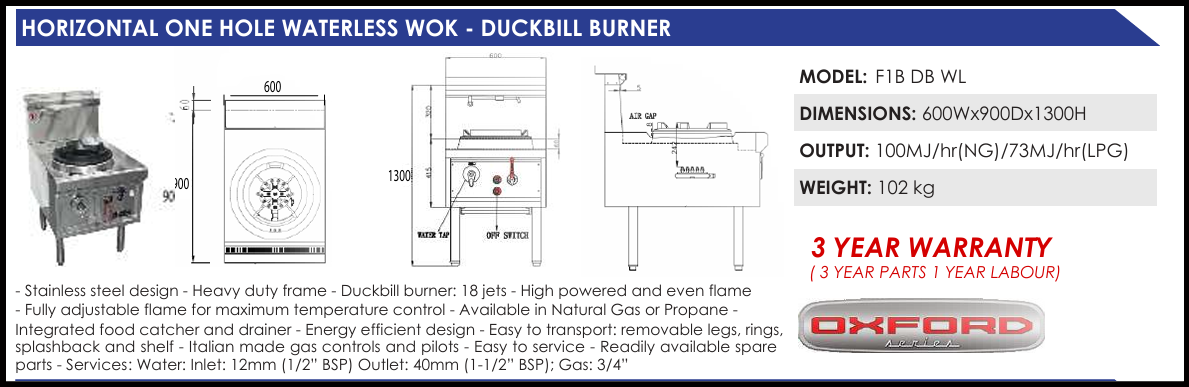 ‘- Stainless steel design – Heavy duty frame – Duckbill burner: 18 jets – High powered and even flame