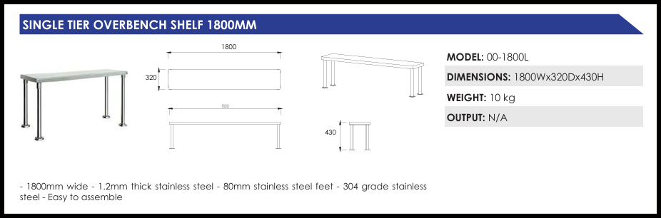1800 mm wide 1.2 mm thick stainless steel 80 mm stainless steel feet 304-grade stainless steel.