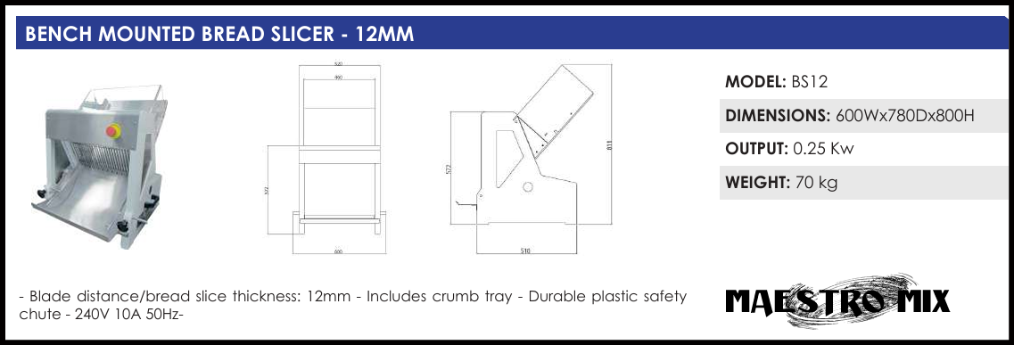 - Maestro Mix small bench mounted bread slicer