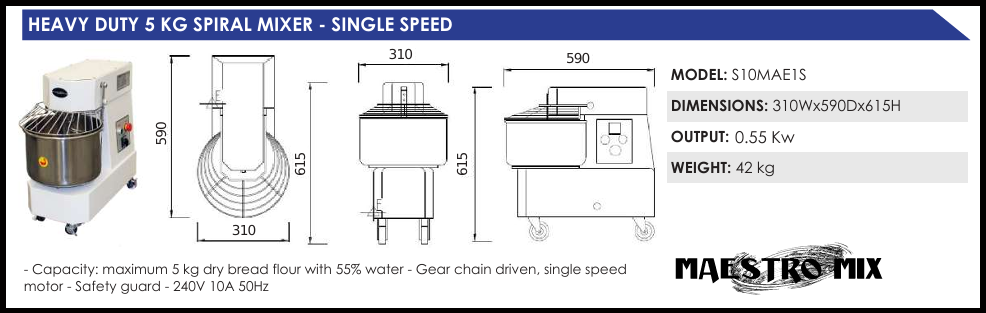 Ideal for pizzerias, bakeries, dumpling restaurants and other establishments that consume dough in large amounts, the Maestro Mix range of spiral mixers are heavy duty units that are guaranteed to withstand the busiest commercial kitchen environments.