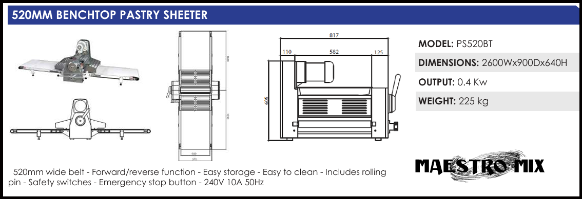 Maestro Mix 520MM Benchtop Pastry Sheeter