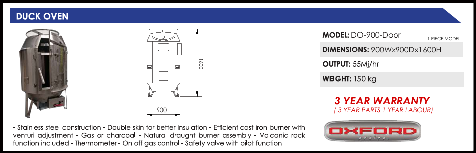 Stainless steel construction – Double skin for better insulation – Efficient cast iron burner with venturi adjustment Gas or charcoal Natural draught burner assembly Volcanic rock function included – Thermometer – On off gas control – Safety valve with pilot function