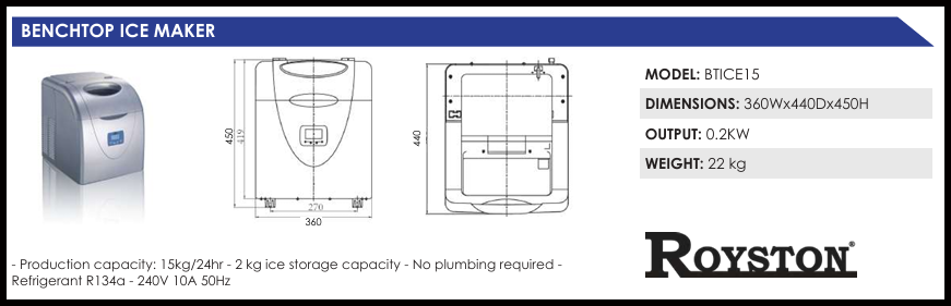 Royston Benchtop Ice Maker – 15kg/24 hours