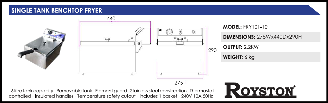 - The Royston Single Basket Fryer offers great value for establishments that are limited on space but want to utilise the full benefits from a commercial deep fryer